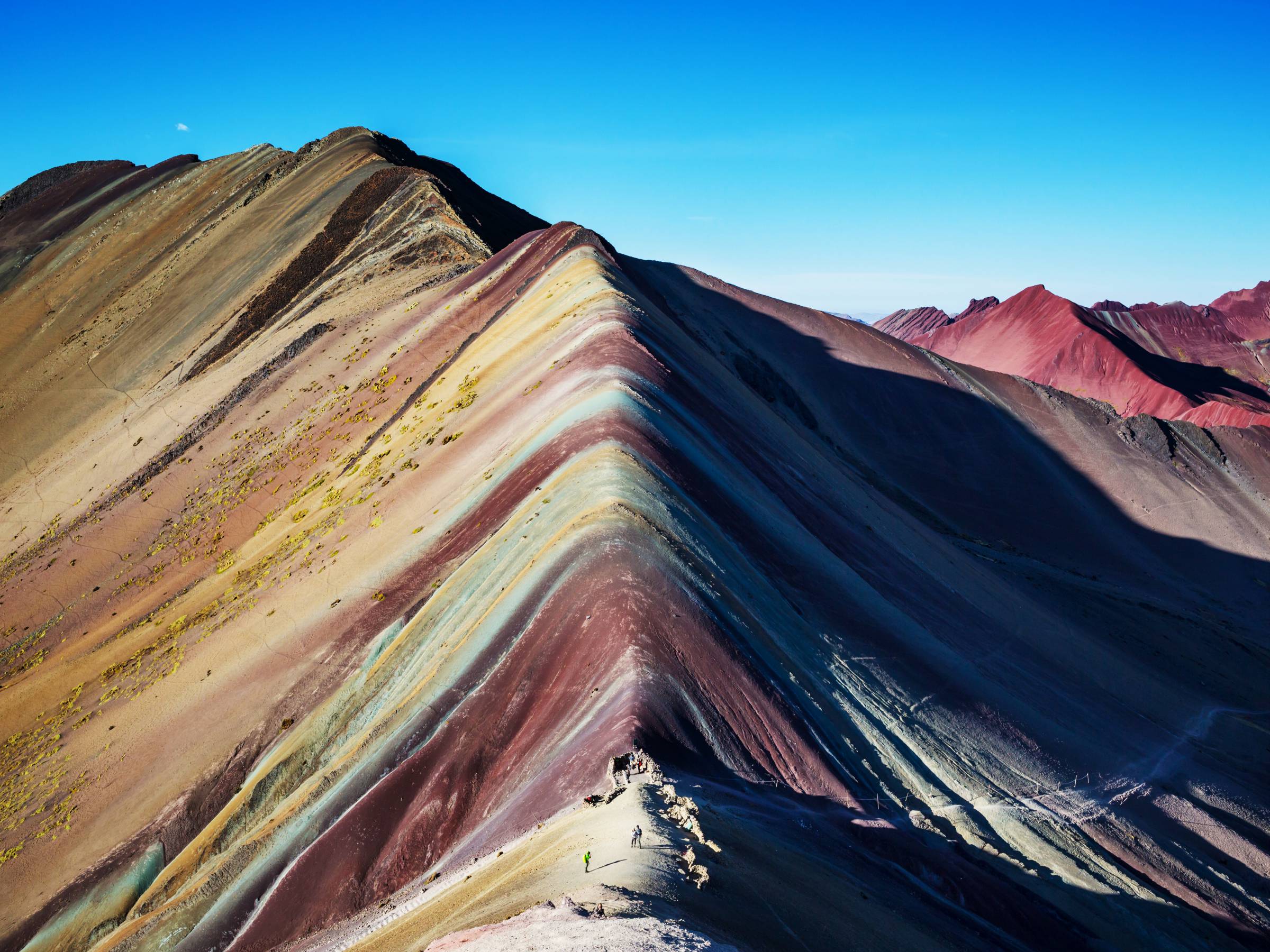 The best time to visit Rainbow Mountain will be in the morning or early afternoon, just after sunrise or before sunset.